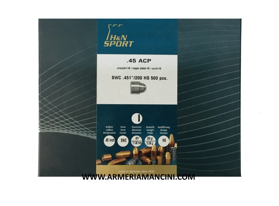 Palle H&N Sport calibro 45 (451'') gr 200 SWC Ramate