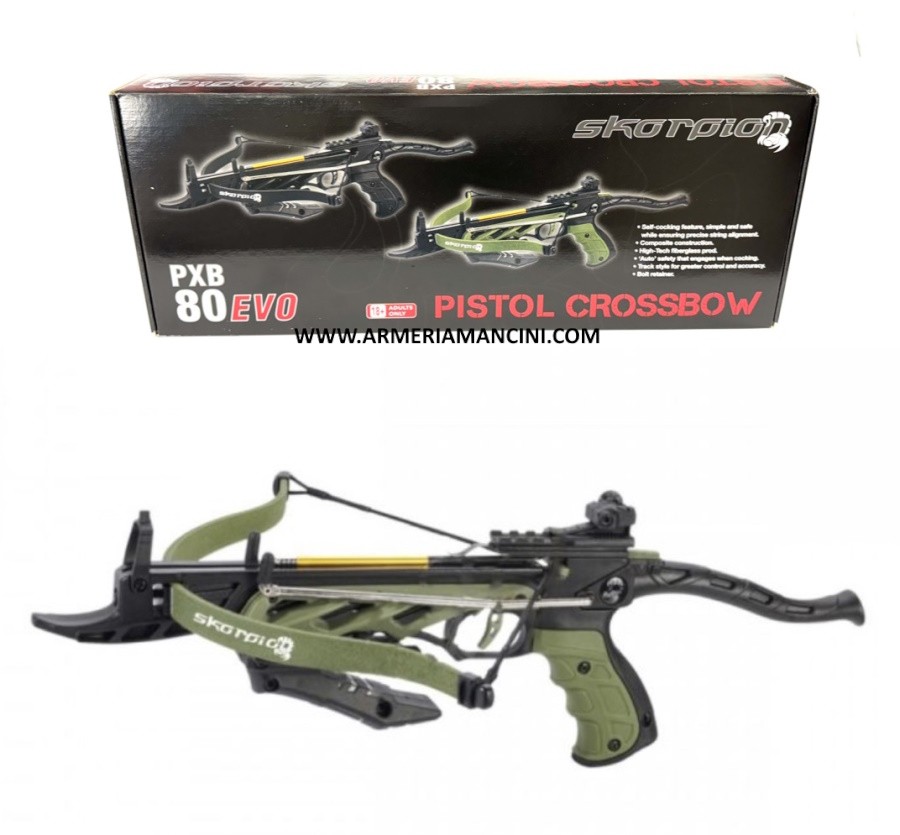 Skorpion - pistola balestra PXB 80 EVO è un'ottima scelta per chi cerca una pistola balestra tradizionale dalla costruzione solida e affidabile.